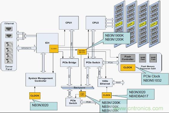 服務(wù)器平臺(tái)有3種時(shí)鐘拓?fù)浣Y(jié)構(gòu):內(nèi)部系統(tǒng)時(shí)鐘、混合系統(tǒng)時(shí)鐘和外部系統(tǒng)時(shí)鐘。針對(duì)PCIe外部時(shí)鐘架構(gòu),安森美半導(dǎo)體提供多種專用時(shí)鐘選擇,包括時(shí)鐘產(chǎn)生器(NB3N3002/NB3N5573/NB3N51034/NB3N51054/NB3N51054/NB3N