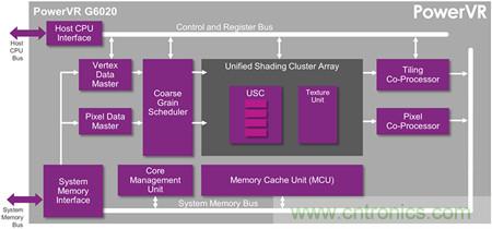 G6020可支持完整的OpenGL ES 3.0功能,是專為高清顯示(720p@60fps)提供流暢的用戶接口而設(shè)計(jì),并具備可滿足下一代各種設(shè)備需求的最佳特性組合。PowerVR是移動和嵌入式應(yīng)用的理想GPU方案,它以可編程著色器為基礎(chǔ)的分塊式延遲渲染(TBDR)架構(gòu)可實(shí)現(xiàn)出眾的性能效率以及每幀的最低能耗。此外,PowerVR利用Imagination的先進(jìn)PVRTC2紋理壓縮技術(shù)來最大化帶寬效率,并確保最小的內(nèi)存占用面積和出眾的圖像質(zhì)量。