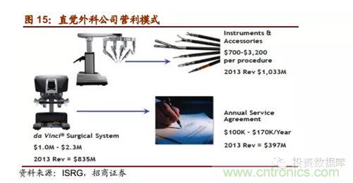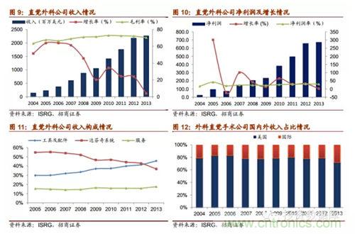 直覺外科公司是全球領先的微創(chuàng)機器人輔助手術機器人公司,2013年營收達22.65億美元,截止2014年第一季度達芬奇機器人累計銷售數(shù)量為3039臺,2014年8月總市值達159.60億美元。