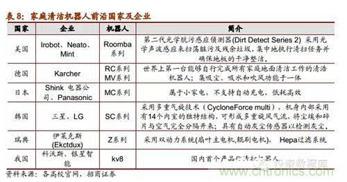 根據(jù)中國品牌網(wǎng)統(tǒng)計公布的2013年十大掃地機器人品牌排行榜,我國國產(chǎn)掃地機器人有6家上榜。目前為止,我國已經(jīng)有一部分表現(xiàn)優(yōu)良的企業(yè)涉足家用清潔機器人的開發(fā)和生產(chǎn),都和國內(nèi)高校研發(fā)機構有所合作,做到研產(chǎn)結(jié)合。當前機器人行業(yè)發(fā)展的宏觀前景良好,市場潛力巨大,目前我國會在未來出現(xiàn)一批在細分行業(yè)技術領先表現(xiàn)良好的潛力企業(yè)。