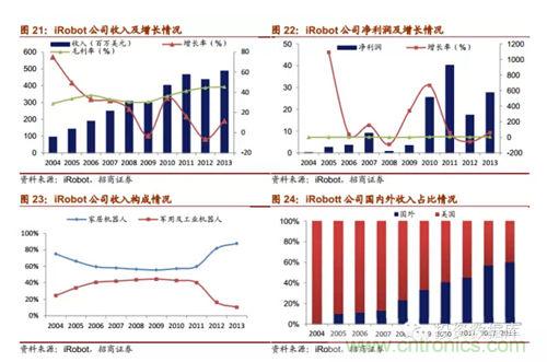 iRobot是家居清潔機器人的領先企業(yè),產(chǎn)品戰(zhàn)略布局以家居清潔機器人為主。2014年上半年實現(xiàn)營收2.54億美元,2013年收入達4.87億美元,全球市場占有率超過60%,2014年8月總市值為10.10億美元