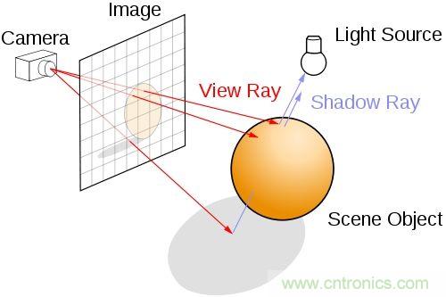 簡單地說,3D技術(shù)里的光線追蹤算法,就是先假設(shè)屏幕內(nèi)的世界是真實的,顯示器是個透明的玻璃,只要找到屏幕內(nèi)能透過人眼的光線,加以追蹤就能構(gòu)建出完整的3D畫面。