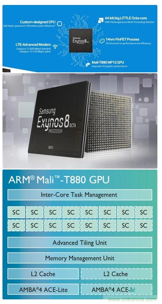 GPU方面是絕對的亮點(diǎn),和華為麒麟950一樣選擇了Mali-T880,但后綴是“MP12”,開了12個核心(完整16個),性能自然有大幅度提升。相比之下,麒麟950只有4個核心。