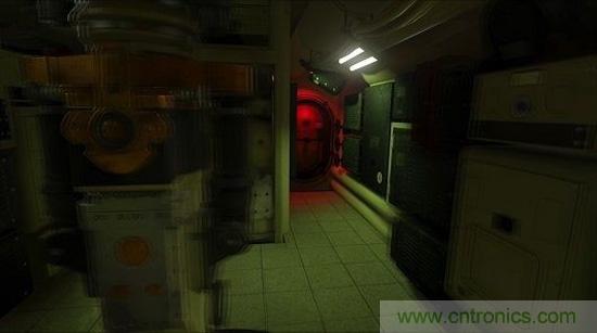 位置抖動是基于方向的Timewarp帶來明顯瑕疵之一。在使用VR設(shè)備時,當(dāng)頭部移動了, 如果在ATW產(chǎn)生圖像幀時只考慮了旋轉(zhuǎn),而平移卻被忽略了。這意味著當(dāng)你的頭從一邊移動到另一邊時,你看見的離你很近的物體會有多個圖像的抖動,這種效果在臨近場空間中是非常明顯的,比如下面的這個潛艇截圖。