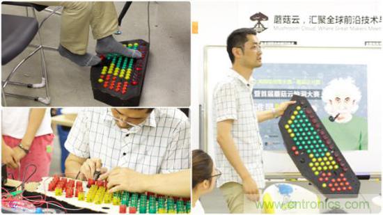 本次大賽的參賽隊伍都是來自國內(nèi)的優(yōu)秀創(chuàng)客,他們從日常生活中尋找靈感,通過團(tuán)隊合作,用創(chuàng)意和技術(shù)制作出了讓人印象深刻的“腦洞”作品:專為老人設(shè)計的聽話的智能家電控制器、小型可控龍卷風(fēng)發(fā)生器、神經(jīng)元探索車、騎行時能產(chǎn)生音效及時提醒路人避讓的智能自行車、為缺少雙臂的殘障人士設(shè)計的智能鍵盤,還有智能儲物拉桿箱、智能服裝模特機(jī)器人、智能多國語言翻譯機(jī)器人……