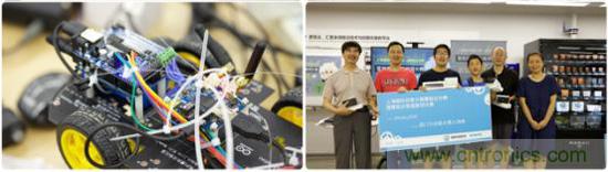 大賽的另一個關(guān)注點來自一支名叫“老少爺們兒”的參賽隊伍,之所以叫這個名字是因為該隊除了有年紀(jì)較大的中年人,還有本次大賽年紀(jì)最小的選手。這只隊伍的參賽項目是“神經(jīng)元探索車”,他們采用Genuino 101(神經(jīng)元)模塊,通過Wi-Fi來控制帶視屏和抓手的小車,實現(xiàn)遠(yuǎn)程取物排障。小選手現(xiàn)場非常積極、投入,與年齡比自己大很多的隊友團(tuán)結(jié)協(xié)作,親自動手制作,最終,他們獲得西門子創(chuàng)客大賽入場券。