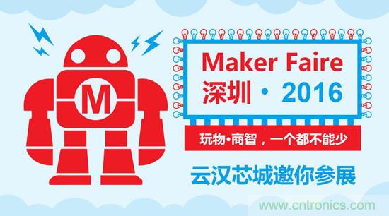 【導(dǎo)讀】2016年10月21日-10月23日Maker Faire在深圳南山蛇口海上世界舉辦,云漢芯城作為合作伙伴參展,為大家準(zhǔn)備各種抽獎(jiǎng)及現(xiàn)場(chǎng)開發(fā)板特賣等活動(dòng),屆時(shí)我們不見不散,一起嗨翻天。