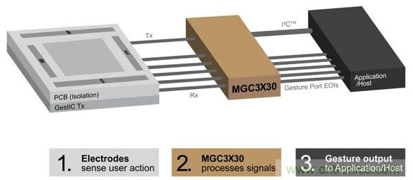 其中比較有代表性的,要數(shù)Microchip公司的GestIC技術(shù)。它基于電場感應(yīng)的原理,在電子設(shè)備周邊的空間中形成一個電場。當(dāng)手部在空間中運(yùn)動時會使電場發(fā)生畸變,布設(shè)在電場中的電極接收器會感應(yīng)到這種變化,并通過專門的控制芯片進(jìn)行信號處理,對手勢進(jìn)行識別和運(yùn)動追蹤,并將數(shù)據(jù)傳遞給電子設(shè)備做出響應(yīng)。Microchip代理商世健公司產(chǎn)品經(jīng)理介紹,與采用攝像頭的光學(xué)3D手勢識別技術(shù)相比,GestIC技術(shù)最大的優(yōu)勢在于功耗極低,能耗節(jié)省多達(dá)90%,同時能避免環(huán)境光等外部因素的干擾,雖然是一個近場識別技術(shù),但其在家庭自動化、家電控制、音響系統(tǒng)、電腦及配件、汽車電子等方面,會有諸多應(yīng)用場景。