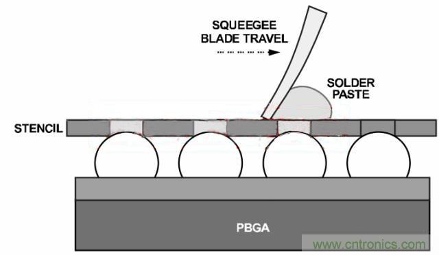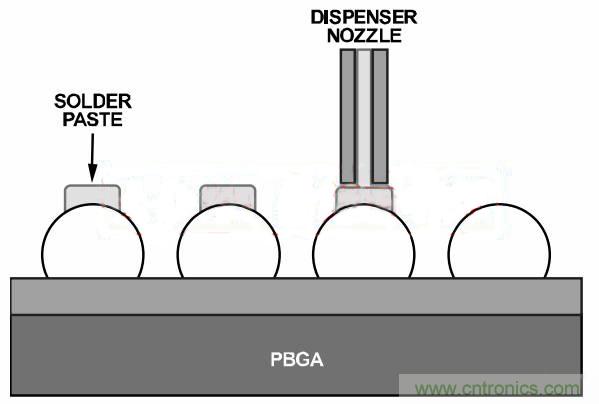 在將替換PBGA器件安裝到電路板上之前應(yīng)涂敷焊膏,目的是取代最初裝配電路板時(shí)涂敷的焊膏,從而保證PBGA焊接接頭的可靠性。給每個(gè)焊球涂敷的焊膏量必須一致,以免在電路板上安裝PBGA時(shí)發(fā)生不共面問(wèn)題。