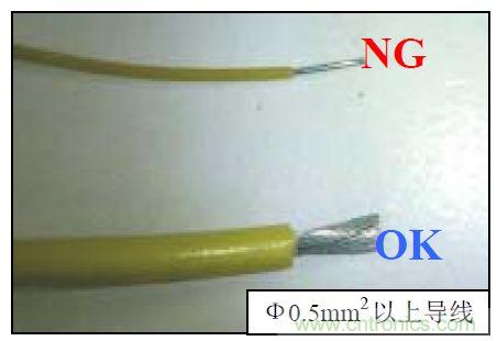 導(dǎo)線應(yīng)選用橫截面面積0.5mm2(AWG20)以上的導(dǎo)線,如下圖: