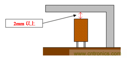 進(jìn)行臥裝時請勿在電解電容端子根部施加力量. 如下圖: