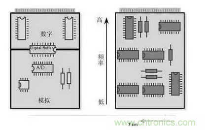上面的兩種情況,說(shuō)明數(shù)?;旌蠁伟逯校M電路極易受到干擾,會(huì)影響信噪比等指標(biāo)。所以在數(shù)?;旌蠁伟?PCB 設(shè)計(jì)過(guò)程中,要對(duì)布局布線提出很高的要求。