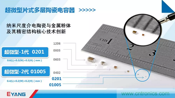 宇陽科技從2001年成立之初便明確了超微型化MLCC的發(fā)展方向。從0402做起,始終進(jìn)行著超微型產(chǎn)品的開發(fā)與產(chǎn)業(yè)化。消費(fèi)類電子產(chǎn)品未來的方向一定是多功能、小型化或者是輕薄化、便攜式。對(duì)所有元器件來講,無論是從低功耗的角度考慮,還是從整個(gè)設(shè)計(jì)考慮,都是微型化的發(fā)展方向。憑借對(duì)MLCC的專注和堅(jiān)持,宇陽成為國內(nèi)最大的MLCC廠商,目前0201尺寸MLCC產(chǎn)銷量已經(jīng)躋身全球前三。