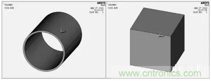網(wǎng)格劃分對有限元的求解及其重要,單元越小,網(wǎng)格越細,則離散域的近似度越好,計算結果也越精確,但計算量及誤差都將增大。本文建立的線圈模型是一個規(guī)則的柱體,采用體掃掠方式劃分網(wǎng)格。空氣模型經(jīng)過澆筑之后形狀變得復雜,采用自由方式劃分網(wǎng)格。圖2為線圈和空氣的有限元模型,最后通過numcmp命令將其澆筑在一起。