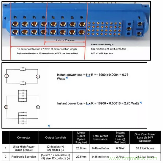 與安費(fèi)諾的PwrBladeULTRA®連接器系統(tǒng)相比,Positronic的Scorpion SP系列連接器是一種機(jī)械接觸式電源連接器,單位效率從1,560W提高0.26%。在連續(xù)一年,每周7天,每天24小時(shí)運(yùn)行的情況下,Scorpion連接器可節(jié)省35.5度電,相當(dāng)于節(jié)省了3美元以上。因此,從運(yùn)營的第三年開始,僅節(jié)省能源成本就會超過Scorpion連接器的全部成本。
