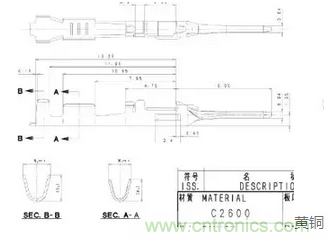 從該圖紙英文品名為端子,且是接插式方式連接,根據(jù)材質(zhì)顯示為黃銅,所以歸入品目8536.9項(xiàng)下,再根據(jù)具體的電壓,歸入相應(yīng)的子目。