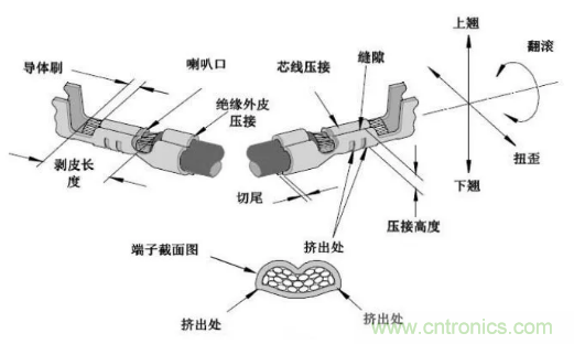 Crimp 是冷壓技術(shù),起源最早可追溯到 1940 年前后。其原理是借助壓線鉗或壓線工具,完成金屬導(dǎo)線和插針的壓接。這種壓接氣密性好、抗腐蝕、線材變形必須超過它的屈服點,因此能夠?qū)崿F(xiàn)可靠的數(shù)據(jù)、信號和動力傳輸。在壓接過程中,線的氧化層或硫化層都可以被去除,以壓針和線的殘余彈性保證持久的電氣連接。