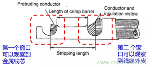 插入時要留意長短深度。線纜插入過短容易導(dǎo)致端接達(dá)不到規(guī)定的拉拔力,因為線纜與端子之間的金屬間接觸減少了;而線纜插入過深則會縮短連接器的使用壽命。以車針壓接為例,當(dāng)?shù)谝粋€窗口可以觀察到金屬線芯,第二個窗口可以觀察到線纜外皮時,表示線芯的位置是剛好的。