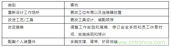 措施:根據(jù)工作場所設(shè)計(jì)原理,審查和評估工作場所。提出更改建議。與工人一起測試變更,并實(shí)施必要的修改。