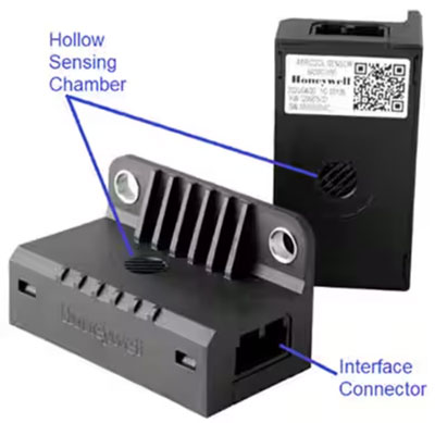 圖 1:Honeywell Sensing and Productivity Solutions 提供的兩款外形相同的電池氣溶膠傳感器:BASC6X-X00 和 BAS6C-H00。BAS6C-X00 是媒介控制單元 1 (MCU1) 版本,而 BAS6C-H00 是較新的媒體控制單元 2 (MCU2) 版本。(圖片來(lái)源:Honeywell Sensing and Productivity)