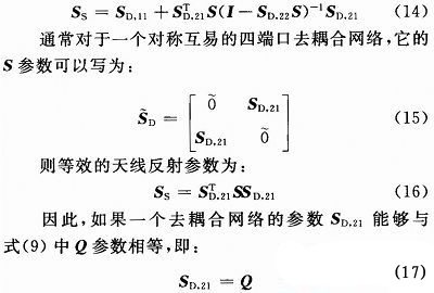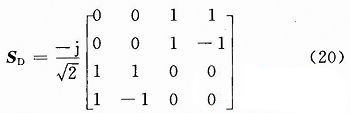 對(duì)于一個(gè)雙天線系統(tǒng),應(yīng)該有兩個(gè)正交模同時(shí)存在,去耦合網(wǎng)絡(luò)是一個(gè)四端口網(wǎng)絡(luò),正交輻射矩陣可以寫為: