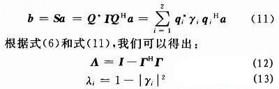 與輻射功率相對(duì)的是反射功率。根據(jù)(5)式及厄米特矩陣的性質(zhì),如果Q可以將H化為對(duì)角矩陣,則S也可以化為對(duì)角矩陣。有: