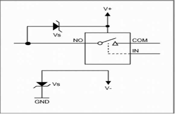 在現(xiàn)有設(shè)計(jì)中,大多數(shù)系統(tǒng)工作于標(biāo)準(zhǔn)電源電壓(單極性3.3V或5V,或雙極性±3.3V或±5V),這個(gè)電壓通常也是板上的最高電壓。在實(shí)際使用中,電路板的輸入端子可能會(huì)暴露于比電源電壓更高的電壓之下,同時(shí),電路板電源被切斷后,輸入端子上的電壓有可能仍然存在。受這種過(guò)壓影響的第一個(gè)元件常常是多路復(fù)用器或開關(guān),這就要求為開關(guān)元件和下游電路提供適當(dāng)?shù)谋Wo(hù)。