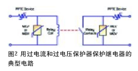 圖2是保護(hù)繼電器的一種典型電路。PPTC保護(hù)器是是與繼電器繞組串聯(lián)著,在出現(xiàn)故障或者發(fā)生意外的過載時,它限制繼電器中流過的電流。這個圖中,還有一個 PPTC保護(hù)器與繼電器的觸點(diǎn)串聯(lián)著,它起的作用與保護(hù)繼電器繞組是一樣的。在選擇PPTC保護(hù)器時,很重要一點(diǎn)是它的額定電壓要等于或高于預(yù)期的最高電壓。還要求保護(hù)器的保持電流必須等于或大于正常運(yùn)作時的最大穩(wěn)定狀態(tài)電流。此外,還要考慮到最高環(huán)境溫度,這是因為隨著環(huán)境溫度上升,保持電流下降。