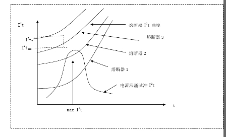 在這里,我們重點分析第(1)點。實際選用的熔斷器的I^{2}t_{F}值,即相應(yīng)于電流浪涌I2tmax最大值處的熔斷器的I2t值, 應(yīng)該滿足:
