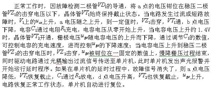 這與傳統(tǒng)的簡單限流或直接關(guān)閉IGBT的控制方式有本質(zhì)的區(qū)別,它是利用單片機(jī)的智能性改變其工作方式來保護(hù)IGBT的安全,從而可靠的保證IGBT的安全。