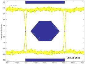 還有一種方法可以檢查這個(gè)軌對(duì)軌保護(hù)元器件對(duì)USB協(xié)議正常工作模式的影響,就是通過圖4的眼圖響應(yīng)來分析信號(hào)數(shù)據(jù)位的完整性。