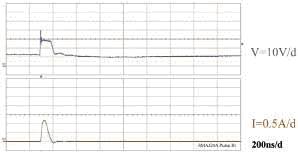 圖10在ISO7637-2脈沖3b測(cè)試過程中通過TVS上的電壓和電流