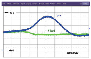 圖2展示NIS5132的一對曲線。導通較低的曲線時,激活的是短路曲線。一旦電流降低至低于這個電平,F(xiàn)ET就完全導通(線性區(qū)域),接下來面對的就是過載電平。如果電流達到過載電平,F(xiàn)ET的柵驅動將立即減小,而漏極至源極電壓將增加,并會將工作模式改為短路電平模式。這器件在過載電平時不能維持穩(wěn)態(tài)工作。