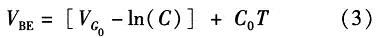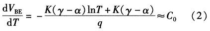 如果忽略由溫度變化引起lnT項(xiàng)變化對式(2)的影響,dVBE/dT可近似等于常數(shù)C0。常溫下C0約為-2 mV/K。為了簡化計算,則PN結(jié)關(guān)于溫度的變化方程可近似線性為