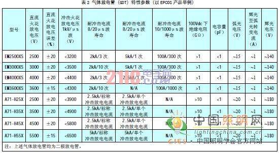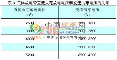為了使LED路燈能夠滿足安全要求,氣體放電管的耐壓選擇至關重要,應該選取足夠耐壓的氣體放電管與壓敏電阻配套,壓敏電阻和氣體放電管串聯(lián)電路(如圖1)應能夠承受基本絕緣的耐壓。幾種氣體放電管的直流火花放電電壓和交流擊穿電壓的關系見表3,氣體放電管的直流火花放電電壓一般應選不低于2500V。