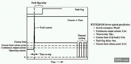 動(dòng)作時(shí)間是指保護(hù)電源開(kāi)關(guān)器件啟動(dòng)其電流限制回路的速度。硅元件所具有的極快的動(dòng)作時(shí)間使其成為功率限制應(yīng)用中的最佳選擇。與PPTC元件不同之處在于其動(dòng)作后的電流值能夠保持在相當(dāng)高的水準(zhǔn),并由電流限制的設(shè)定值來(lái)決定。電流限制設(shè)定值是指硅元件一旦動(dòng)作后將電流所限制到的標(biāo)準(zhǔn),其數(shù)值根據(jù)故障狀態(tài)的嚴(yán)重程度來(lái)變化,通常定義為故障電阻的函數(shù)。對(duì)于小功率的應(yīng)用,電流限制值應(yīng)該盡量設(shè)低。