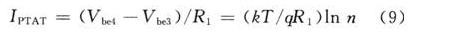 由式(9)可知,流經(jīng)R1的電流與電源無關(guān),只與絕對(duì)溫度成正比,即得到PTAT電流。