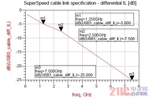 帶ESD防護(hù)的USB3.0超高速鏈路的信號(hào)完整性分別在帶ESD防護(hù)和未帶ESD防護(hù)的情況下,對(duì)圖1所示的整個(gè)USB3.0超高速鏈路執(zhí)行了信號(hào)完整性模擬。整個(gè)收發(fā)部分具備90歐姆差分阻抗,考慮了發(fā)送側(cè)和接收側(cè)的寄生效應(yīng)。測(cè)得數(shù)據(jù)表明了USB3.0電纜的狀態(tài)。規(guī)定最長USB3.0電纜長度為3米。