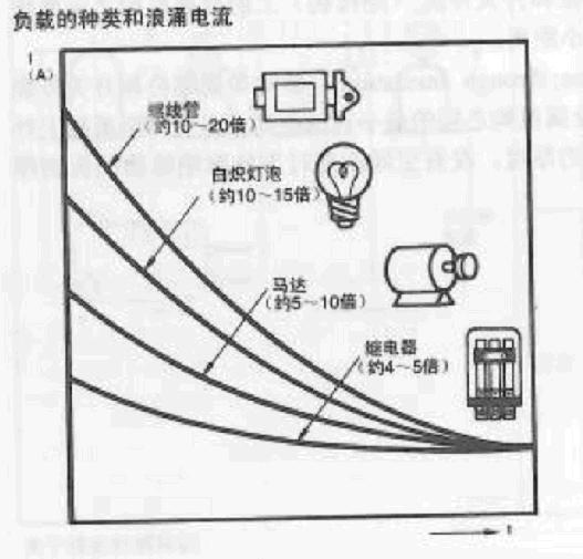 沖擊電流的產(chǎn)生和負載的種類和特性有關,和通斷頻率也有關系。特別是在有沖擊電流存在的負載的情況請與穩(wěn)態(tài)電流一起測定沖擊電流值。下圖顯示了有代表性的負載種類與沖擊電流的關系。