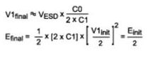 4. 能夠在瞬間導(dǎo)致IC損壞的能量相當(dāng)于微焦級,有外部電源去耦電容時,考慮這一點非常重要,從電源電容(C1)傳遞到IC的能量是: