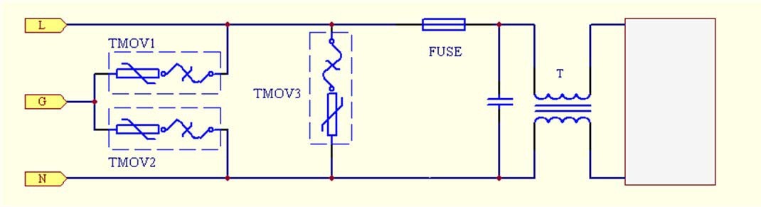 因此,我們認(rèn)為,對于家用電器而言,最好的模式是采用全模保護(hù),即共模保護(hù)加差模保護(hù)。