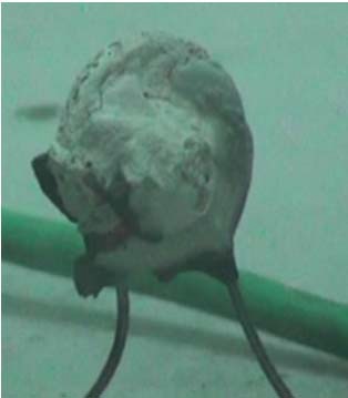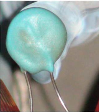 圖5:MOV14D471 在600V*5A 電流試驗(yàn)后圖片 圖6:MOV14D471 在600V*10A 電流試驗(yàn)后圖片