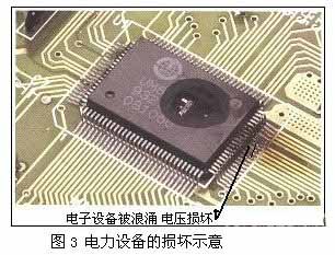 ⑵ 電力設(shè)備的損壞。干擾信號(hào)和浪涌對(duì)電路的不利影響是每一個(gè)電力工程師都不能忽視的問(wèn)題。在過(guò)去繼電器的短時(shí)間過(guò)載輸入可能是沒(méi)有危險(xiǎn)的,但是在使用半導(dǎo)體電路的時(shí)代里,即使是低能量脈沖也能造成損壞或操作失敗,其損壞見(jiàn)圖3所示。