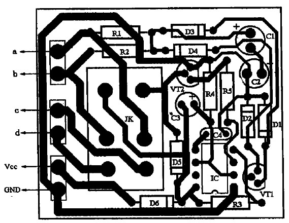555一定要選用功耗很低的CMOS時基電路。VT1、VT2用9014、C1815型小功率塑封晶體管,要求電流放大倍數(shù)β>100.D1~D5均用1N4148型硅開關(guān)二極管,D6用于電源接反保護(hù),可選用1N4001~1N4007型硅整流二極管。R1~R5均用0.5 W五色環(huán)金屬膜電阻。C1、C2用優(yōu)質(zhì)鋁電解電容,C3要選用漏電小、精度高的鉭電解電容,否則將影響延時精度。JK選用12 V/7 A雙聯(lián)型繼電器(左、右聲道各用一組),如JZC-22F.