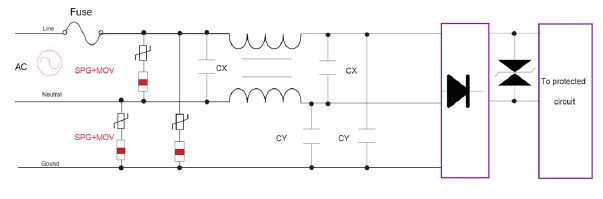 9、專用于高頻通訊信號(hào)線路進(jìn)行防護(hù),一般不能直接用在有源電路上進(jìn)行防護(hù),在有源線路中它必須配合限壓型(MOV、HYPERFIX)的保護(hù)器件來(lái)同時(shí)使用。
