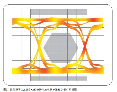 如圖3所示,硅解決方案具有更高的電容。雖然它們的眼圖通常在2.25GHz或1.48GHz運行速度下測量,以符合1080p的36位和24位色彩深度,但是即使是在這些速度下,它們的眼圖也似乎延伸至HDMI1.3規(guī)范。這可能會導致電路板設計上的限制增加。
