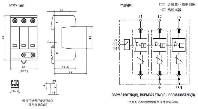 這種三極設備的特點是,用于TN-C 230/400V系統(tǒng)("3-0"電路)中防止浪涌。
