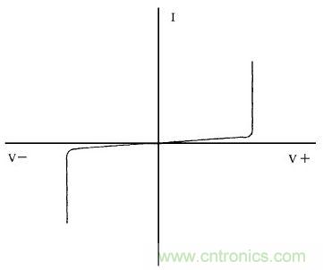 從圖1中便可反應(yīng)出壓敏電阻的伏安特性曲線來(lái), 基本特性如一對(duì)性能相同的同極性串聯(lián)的穩(wěn)壓二極管。