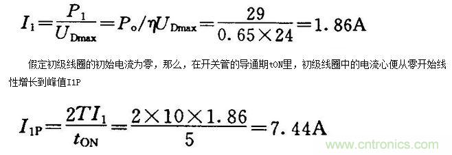 (1)即使輸入電壓最大,主開關(guān)器件導(dǎo)通時間最長,也不至于使變壓器的磁芯飽和;