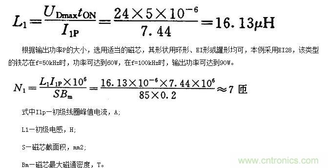 詳細(xì)的變壓器設(shè)計方法與計算相當(dāng)復(fù)雜,本文參照經(jīng)驗公式,依據(jù)下面的步驟設(shè)計了本例轉(zhuǎn)換器中的高頻變壓器。